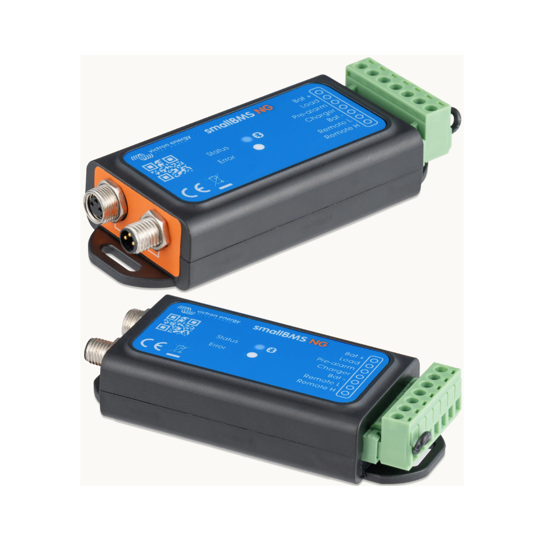 Das Victron SmallBMS NG ist eine einfache und kostengünstige Alternative zum VE.Bus BMS NG für Anwendungen, die keine Integration mit Victron-Wechselrichtern/Ladegeräten erfordern. Es bietet einen unverzichtbaren Schutz für Lithium-Batterien ohne die zusätzliche Komplexität der VE.Bus-Kommunikation und ist daher nicht für die Verwendung mit VE.Bus-Wechselrichtern/Ladegeräten wie MultiPlus und Quattro geeignet.